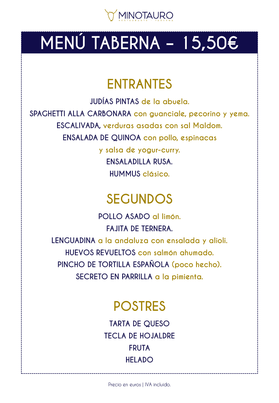 CARTA Y ESPECIALIDADES